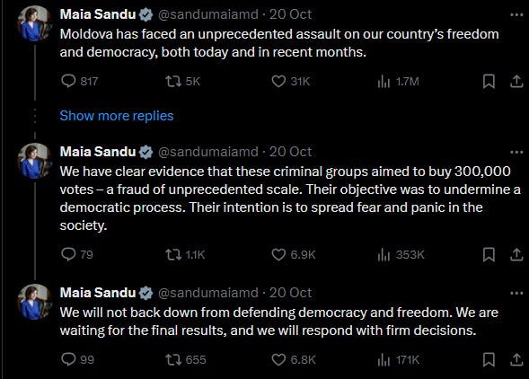 Screenshot of Moldovan President Maia Sandu’s X/Twitter account